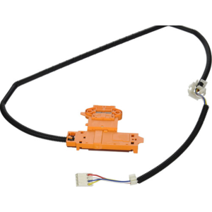 This black door strike replaces the original white part. It's useful for resolving issues with the washer door not opening or closing, the washer not starting, or excessive noise during operation.